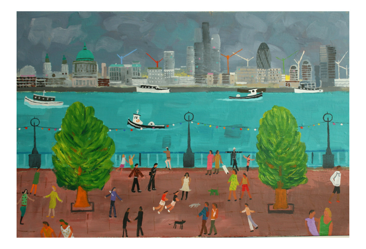 I have two paintings to show today. One of The London Eye and my flower painting that has been sitting in my studio awaiting attention. Its very err! Camp. So I decided instead of toning it down to tone it up instead with the red spotty Jug. Got the butte